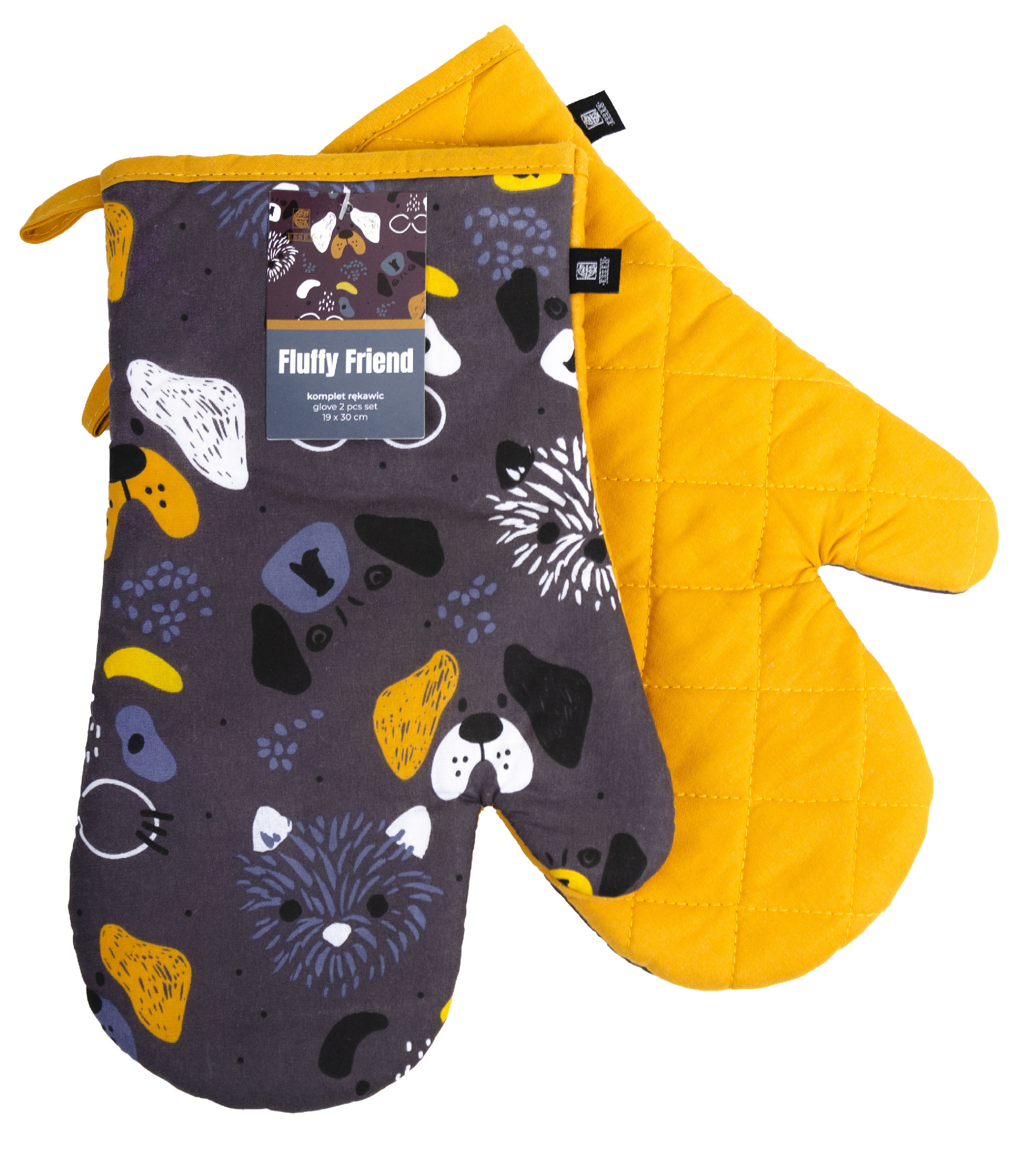 Elegantní a praktické kuchyňské rukavice ze 100% bavlny - prošívané s moderním designem s prodlouženou ochranou zápěstí. Jsou opatřeny praktickým poutkem na zavěšení. Tyto kuchyňské rukavice jsou praktickým a módním doplňkem každé kuchyně. V nabídce jsou různé barvy a vzory jak do moderní kuchyně tak i na chalupu.