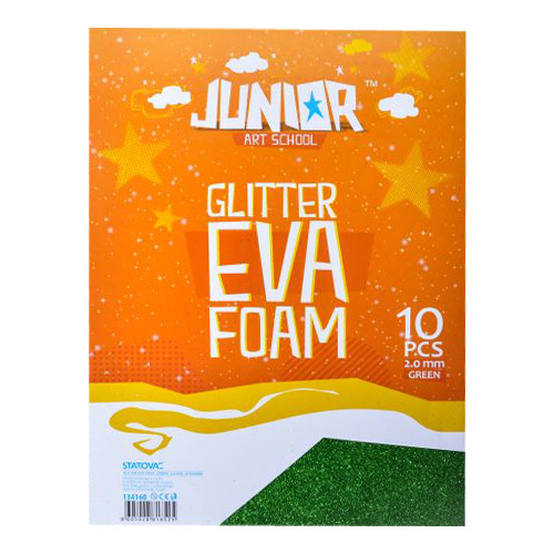 Dekoračná pena EVA pre kreatívne tvorenie. Formát A4 s hrúbkou 2.0 mm. Sada obsahuje 10 ks. Farba: Glitter zelená. prečítať celé