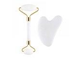 PALSAR7 Face-roller Masážní váleček a destička Guasha (bílý jadeit)