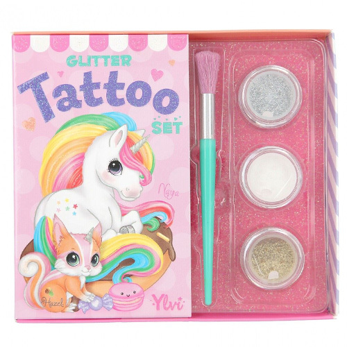 Sada trblietavých tetovaní Ylvi vám umožní premeniť svoj vzhľad podľa nálady a príležitosti. Vyberte si z 38 rôznych šablón, ktoré obsahujú rôzne motívy - stačí odstrihnúť požadovaný obrázok, odstrániť ochrannú fóliu a priložiť na čistú a suchú pokožku. Potom namočte priloženú hubku a podržte ju 20-30 sekúnd na obrázku. Po odstránení papiera sa tetovanie okamžite zachytí na koži. Nakoniec podľa fantázie naneste trblietavý prášok z troch dostupných farieb a prebytočný materiál zotrite priloženým štetcom.