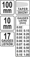 Kvalitní ocelové měrky na spáry sada 17 listů. Jednotlivé listy jsou šířky 10 mm a délky 100 mm zhotoveny z pružinové oceli. 0,02 / 0,03 / 0,04 / 0,05 / 0,06 / 0,07 / 0,08 / 0,09 / 0,1 0,15 / 0,2 / 0,25 / 0,30 /0,40 / 0,50 / 0,75 / 1,0 délka 100 mm šířka 10 mm počet listů 17 tvar zkosená...