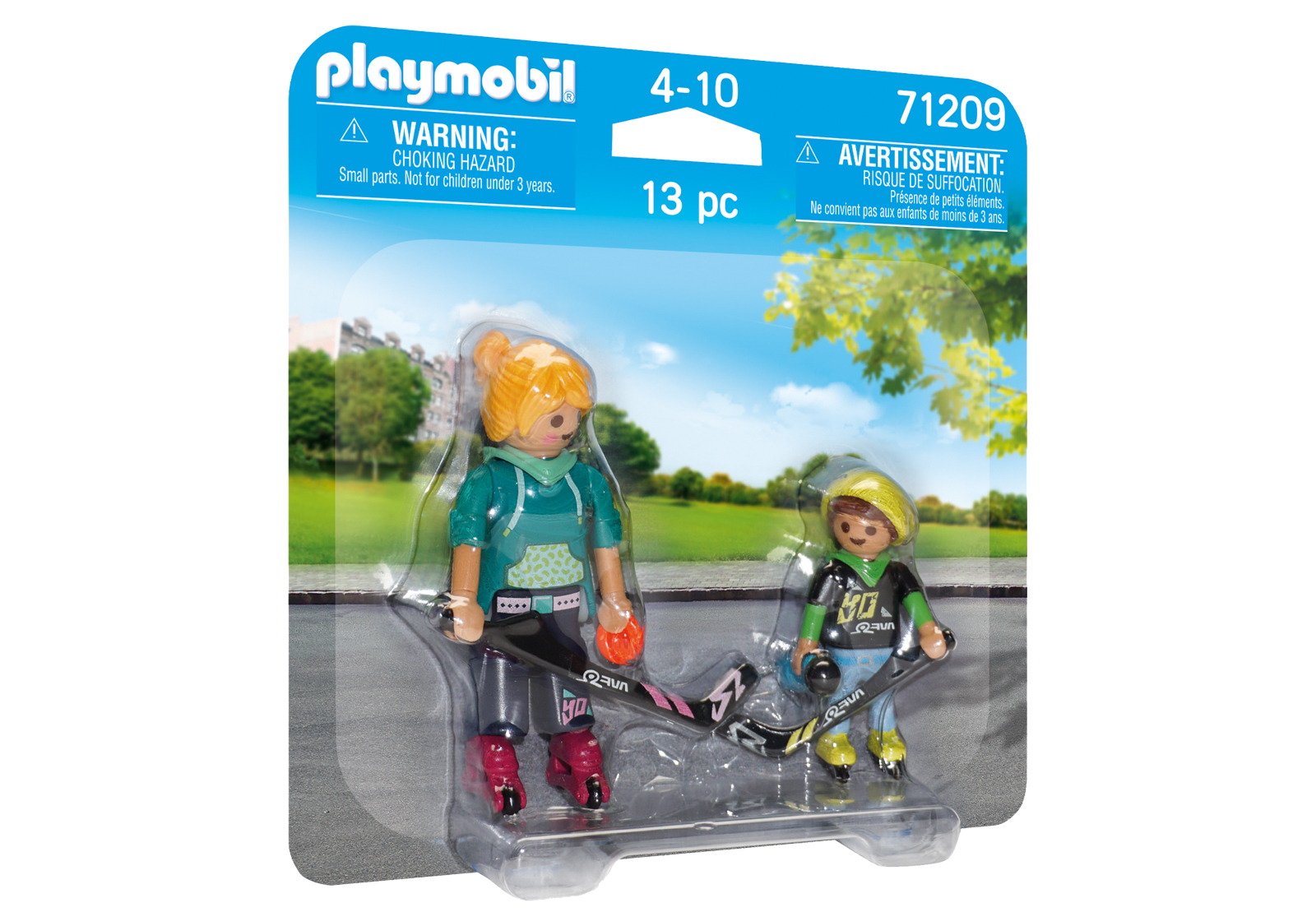 Sportovní zábava je dostupná s DuoPack Inline Hockey od PLAYMOBIL. Matka a syn vklouznou na kolečkové brusle a předvedou vzrušující souboj o puk. Kdo dá nejvíce gólů? Abyste se zchladili tolika sportem, doušek z láhve na pití přichází právě včas. Počet dílků: 13. Rozměry balení: 15x15x3,8cm. Věk: 4+