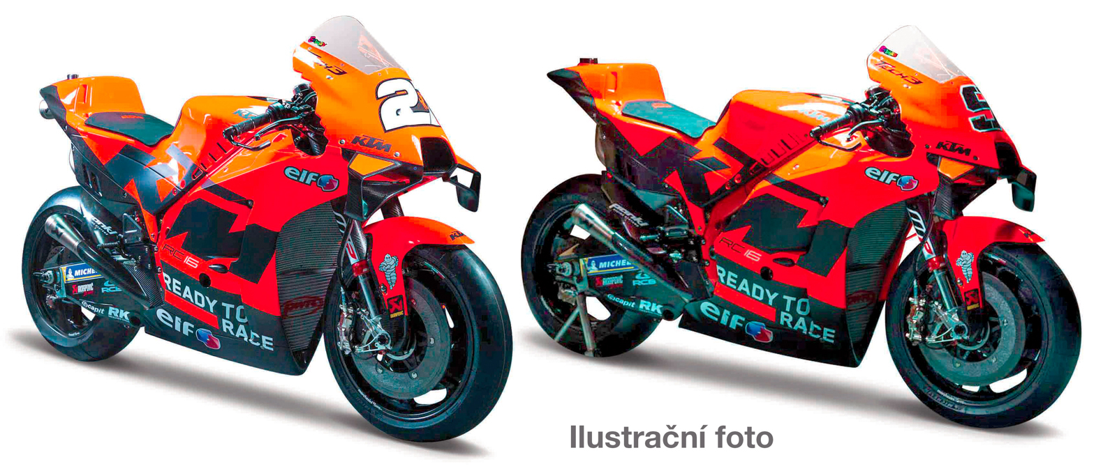 Tech3 KTM Factory Racing 2021. Model motocyklu v měřítku 1:18 vyrobený z kovových a plastových dílů. Motocykl je zabalen v papírové krabičce s fóliovým průhledem. Otočná řídítka, odpružená zadní vidlice. Varianty: #9 Danilo Petrucci #27 Iker Lecuona. Assort je náhodný mix modelů. Výběr nelze...