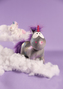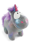 Šedá jako hlubiny galaxie v kombinaci s barevným hvězdným prachem – to je Unicorn Star Bringer. Kouzelná mýtická bytost fascinuje svým lesklým duhovým rohem a barevným potiskem metalické fólie na nadýchaném hebkém plyšovém těle. Hříva a ocas v sytě fialové, lesklé malé uši, roztomilý výraz...