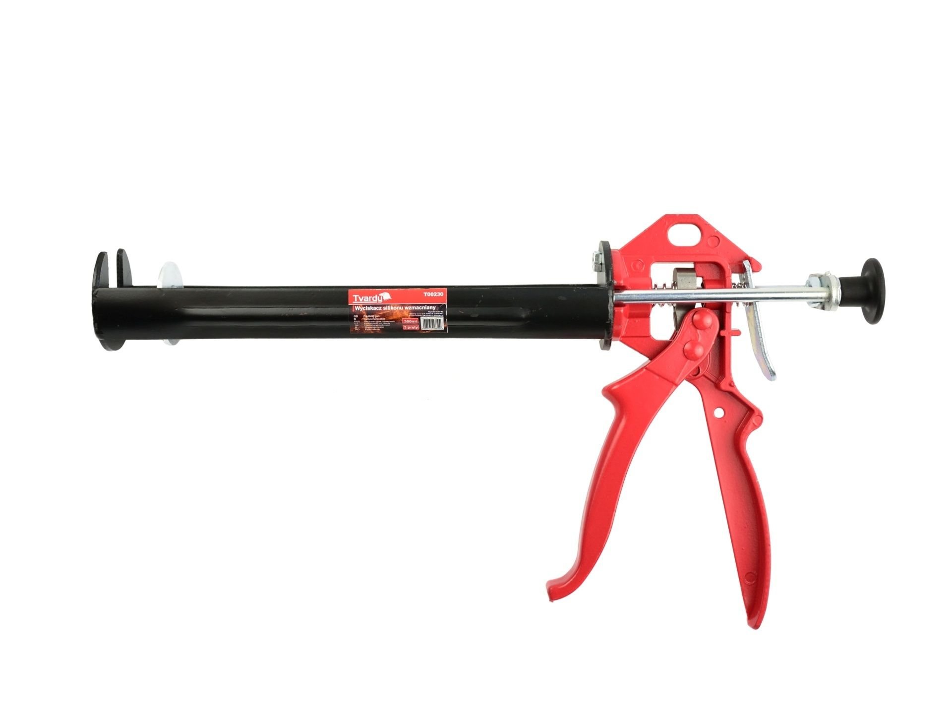 Zesílená vytlačovací ruční pistole na hmoty/chemické nádoby se standardním objemem 300 ml. Pistole má robustní konstrukci ze silné oceli a je vybavena dvěma přídavnými vodítky pístu, které umožňují provádět práci bez sebemenšího rizika poškození pistole. Disponuje pohodlnou, ergonomickou a robustní rukojetí a je vhodná zejména pro vytlačování hustých hmot, jako jsou lepidla, tmely, maziva atd.