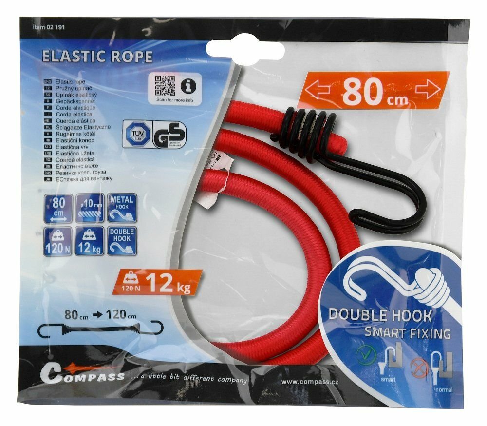 Upínač pružný DOUBLE HOOK 10mm/80cm TÜV/GS COMPASS