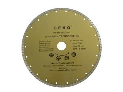 Kotouč diamantový řezný, TURBO, 230x8x22mm GEKOPrecizní diamantový řezný kotouč GEKO s nepřerušovaným diamantovým segmentem a prolamováním po celém obvodu. Díky prolamování turbo kotouč chladí lépe jak obyčejný celoobvodový, lépe vynáší obroušený materiál z řezu ven a řezání je rychlejší, avšak...