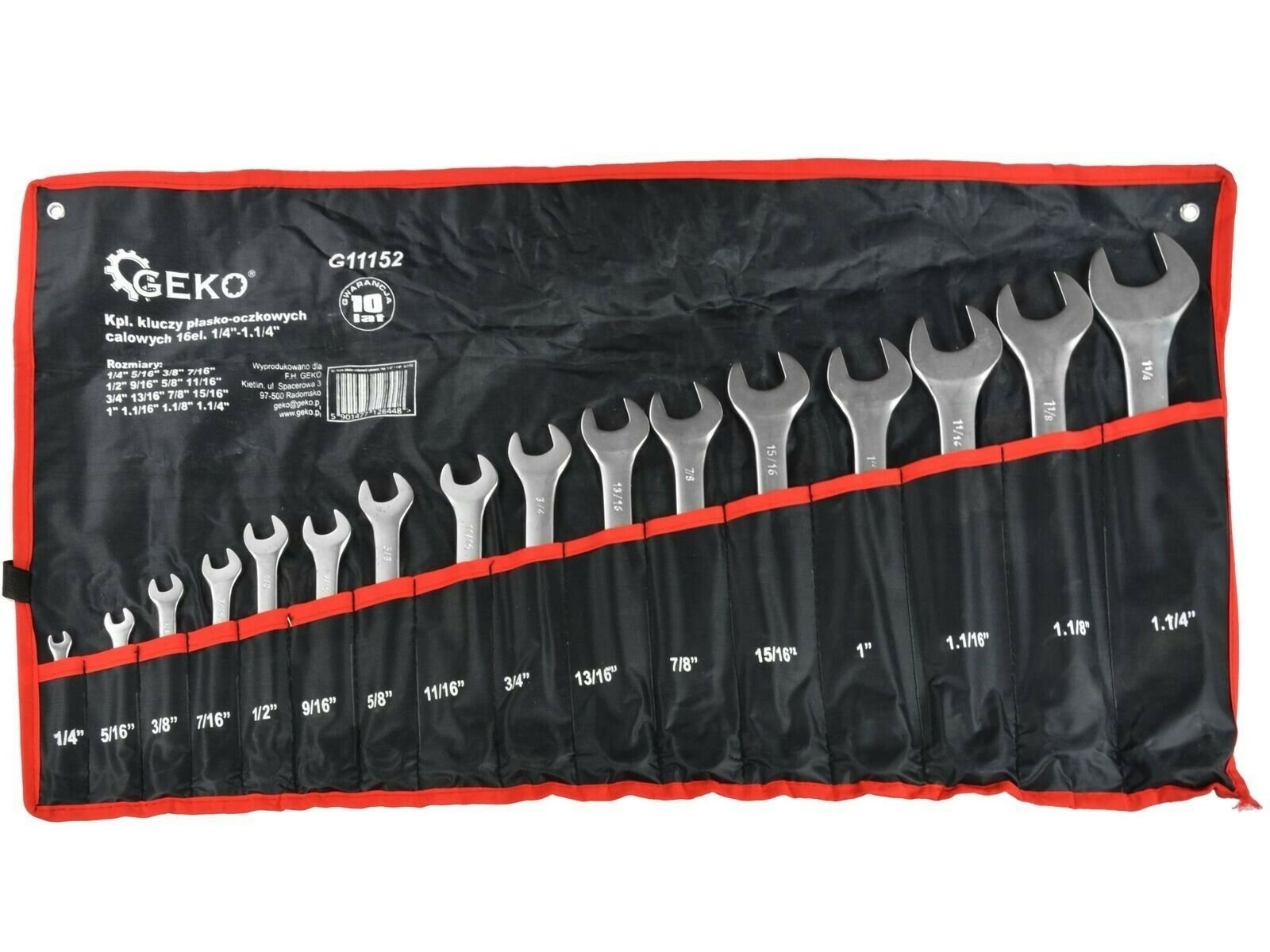 Klíče očkoploché sada 16ks, 1/4"-1,1/4", GEKO