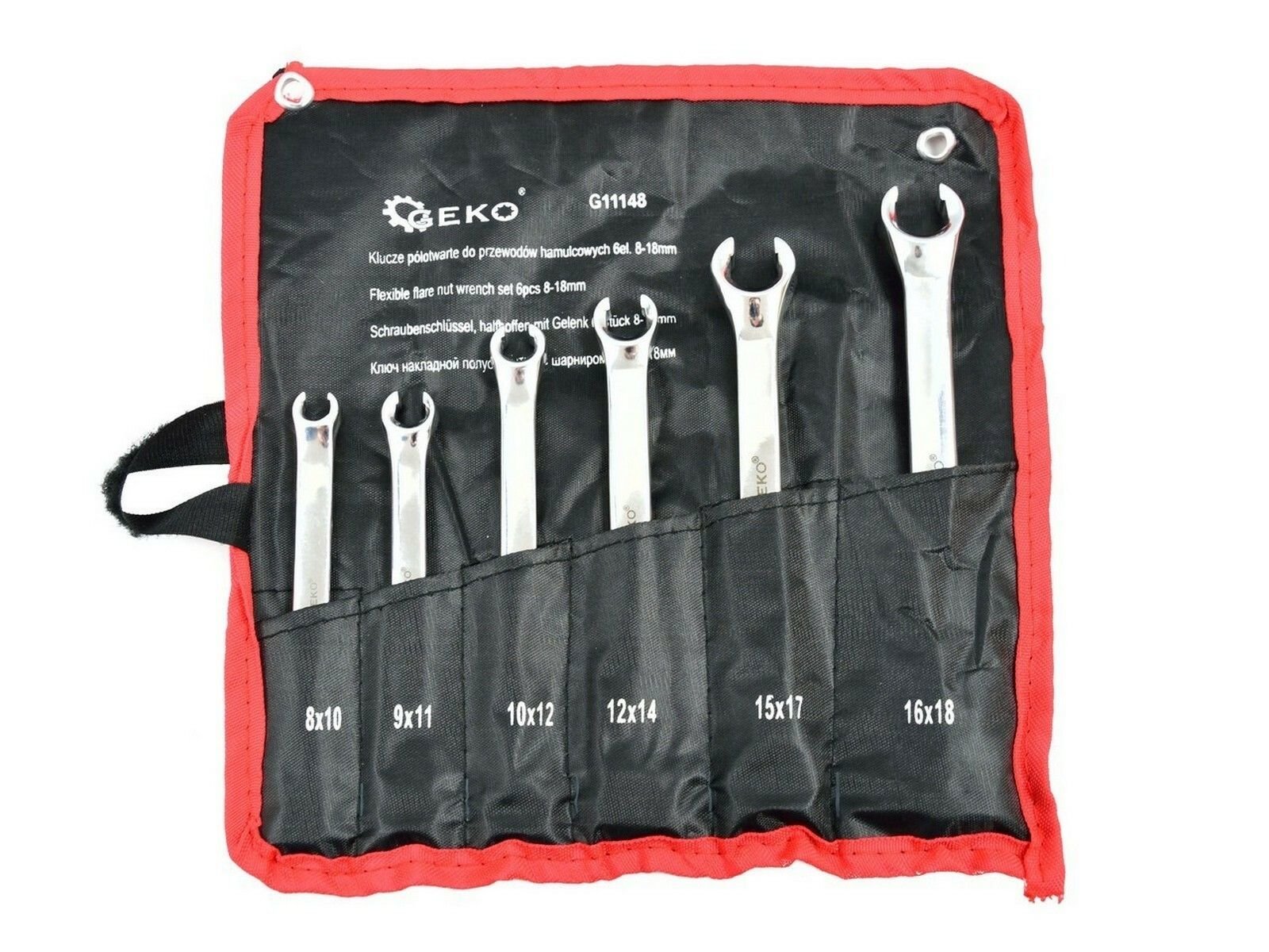 Klíče na převlečné matice brzdových vedení, 6ks, 8-18mm GEKO