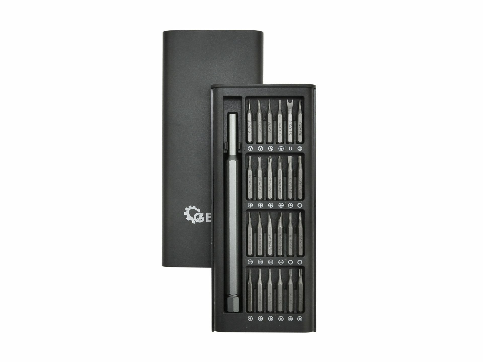 Profesionální sada přesných bitů GEKO. Sada obsahuje různé typy přesných bitů, které jsou nezbytné při opravách telefonů, mobilních zařízení, notebooků a dalších zařízení vyžadujících přesné nástroje, včetně hodinek, brýlí atd. Bity jsou vyrobeny z křemíkové oceli S2, která má mnohem vyšší tvrdost a pevnost než běžně používaná nástrojová ocel CrV.