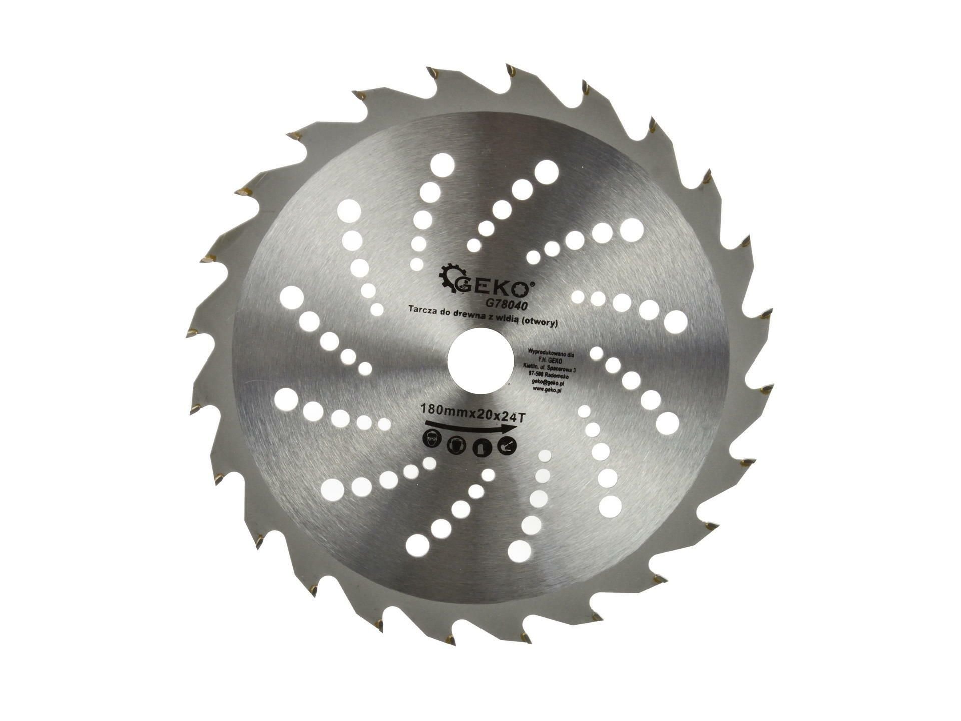 Kotouč pilový vidiový s otvory, 180x20x24T, GEKOPilový kotouč je určen pro zpracování měkkého a tvrdého dřeva, dřeva z příčných vláken, dřevotřískových desek a tesařských výrobků. Pečlivě pájené karbidové indukční zuby s pravým úhlem sklonu zajišťují, že ostří zaručuje rychlé a přesné řezání....