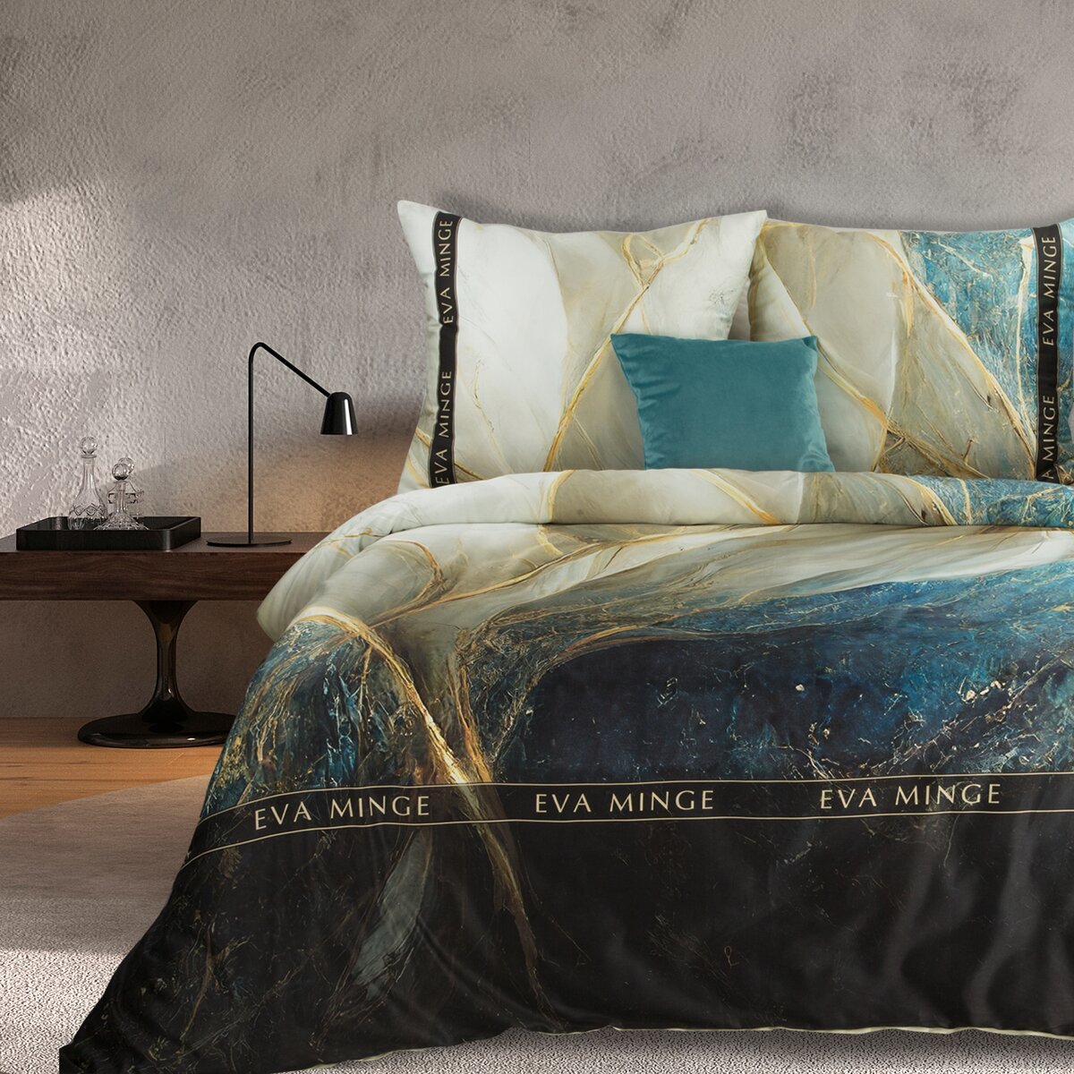 Luxusní nádherné francouzské ložní povlečení na společnou přikrývku ze 100% saténové bavlny rozměru 200x220 cm s 2 kusy povlaků 70x80 cm s moderním motivem. Motiv povlečení je z dílny návrhářky EVA MINGE. Povlečení je vyrobené z jemné, odolné 100% egyptské bavlny - mako saténu. Mako satén je velmi odolný a na dotek velmi příjemný, povlečení se vyznačuje krásným designem a dokonalými barvami.