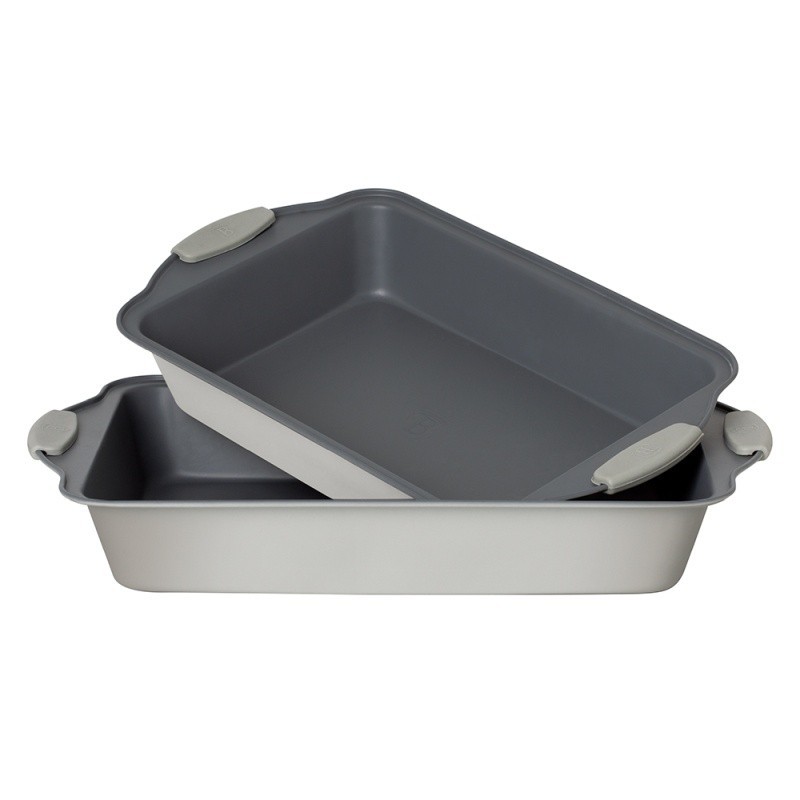 • Materiál: uhlíková ocel•Velikosti: • 36236 cm• 40,525,56 cm• Barva: saténově šedá• ZDARMA 2 KS ŽÁRUVZDORNÉ SILIKONOVÉ RUKOJETI • Šedý nepřilnavý povrch• Odnímatelné silikonové rukojeti• Maximální teplota použití v troubě +220°C• Lze mýt v myčce - snadno se čistí!• Šetrné k životnímu prostředí•...