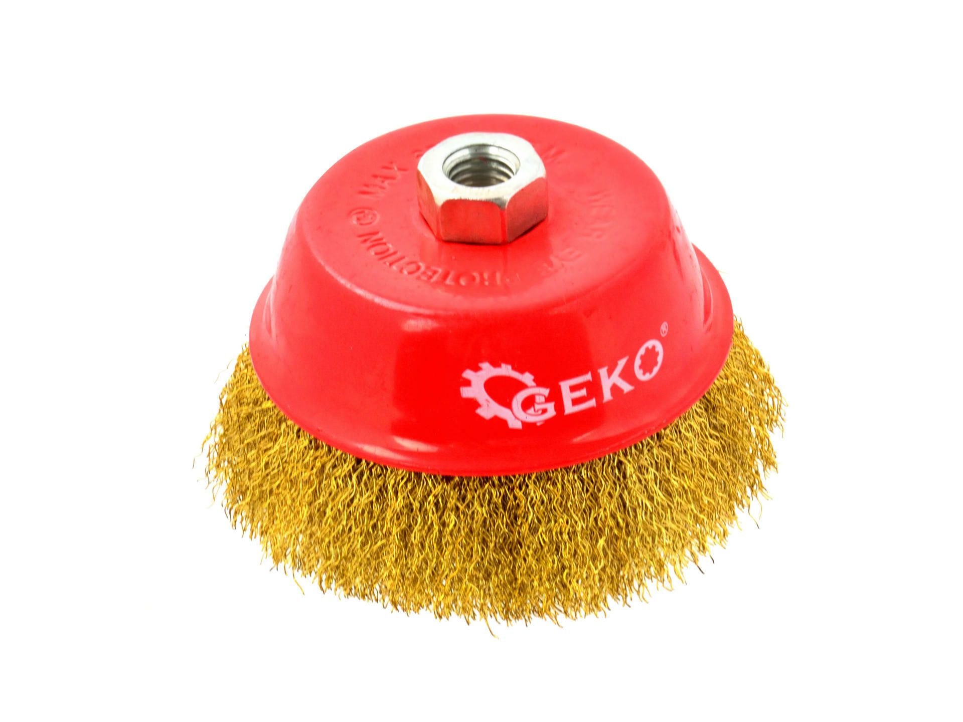 Kartáč hrnkový, 125mm, M14, GEKOByl vyroben z vysoce kvalitního tlustého mosazného drátu.Ideální pro renovační práce, čištění kovových povrchů, odstranění starých nátěrů, laků, rezu, otřepů apod.Vlastnosti produktunamontovaný na závitu M14 (standardní úhlová bruska)vyrobený z vysoce kvalitního...