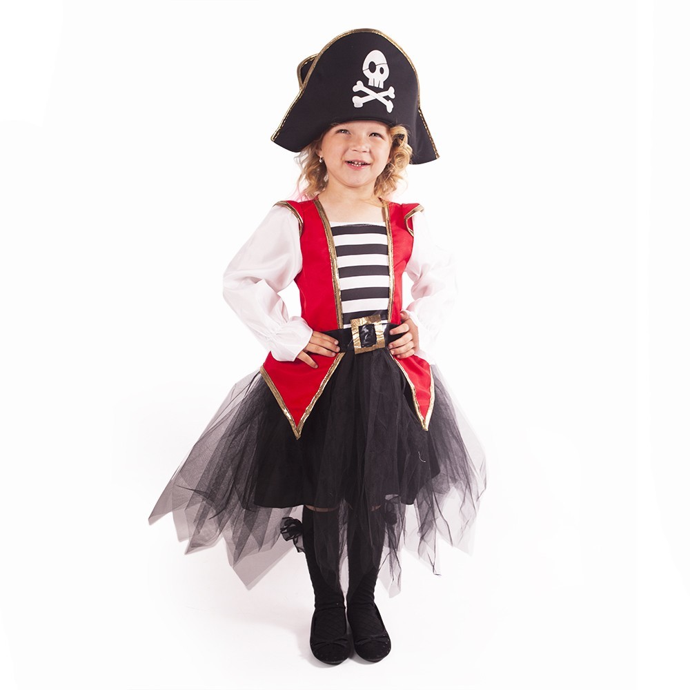 Exkluzivní karnevalový kostým s motivem pirátky! Úchvatný kostýmek v černo-červených barvách je obohacen o krásnou černou tylovou sukni. Velikost M je určena pro holčičky ve věkovém rozmezí 6 - 8 let (116 - 128 cm). Balení obsahuje šaty a perfektně sladěný klobouk. prečítať celé