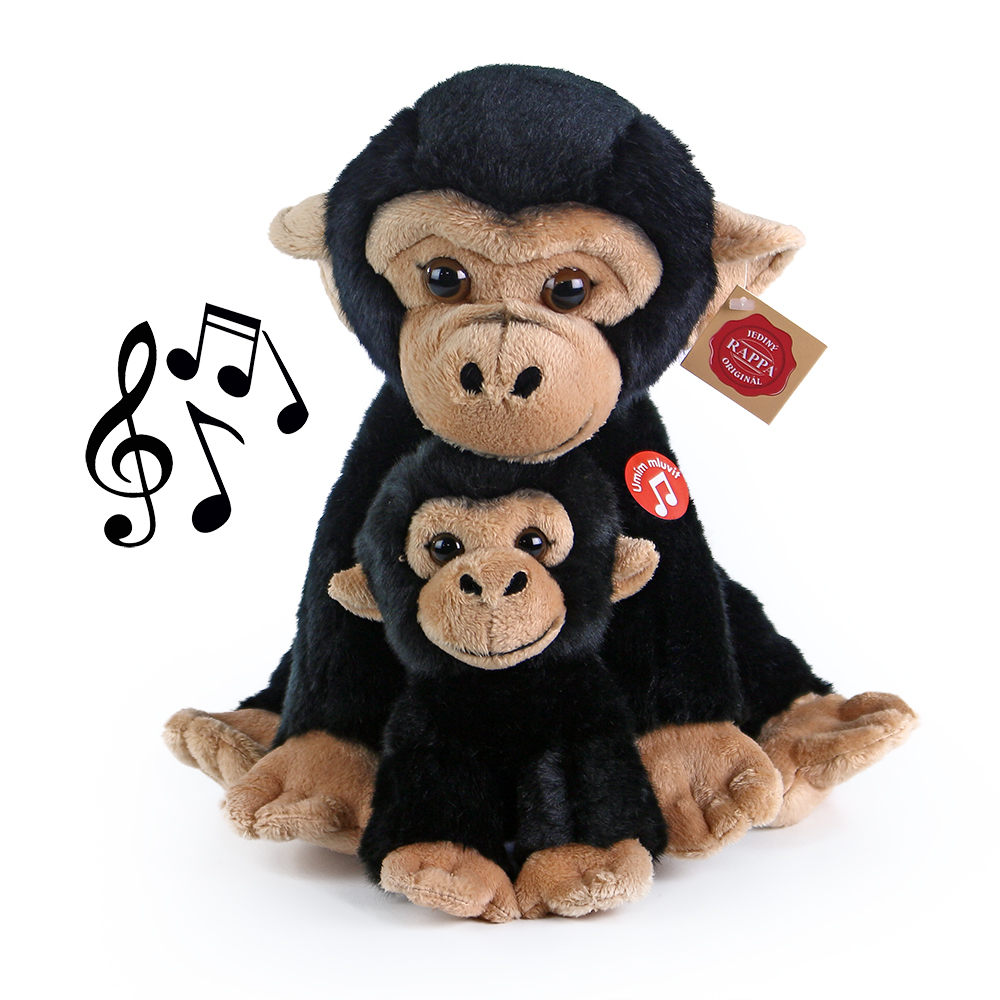 Nádherná plyšová opice ve velikosti 27 cm, mláďátko má velikost cca 13 cm. Opice je vyrobena z vysoce kvalitní plyše a je tak součástí exkluzivní kolekce plyšových hraček RAPPA. Navíc tato hračka při zmáčknutí vydává reálné zvuky, baterie jsou součástí a nelze je vyměnit.
