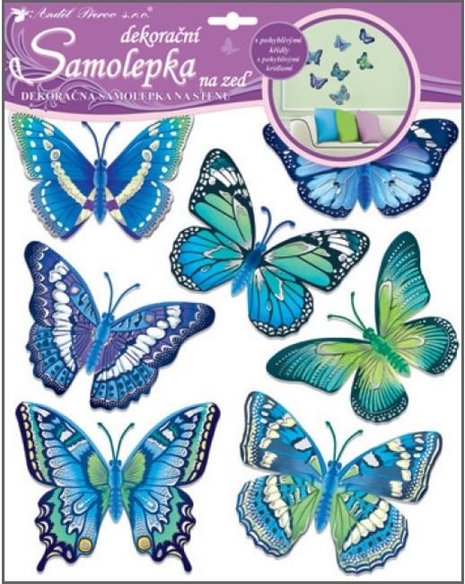 samolepka na zeď MOTÝLI modří, 30,5x30,5cm