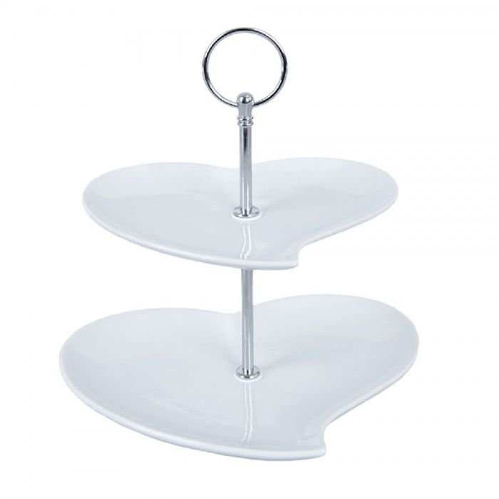 etažér 2patra, 14/17cm, SRDCE, porcelán/Cr