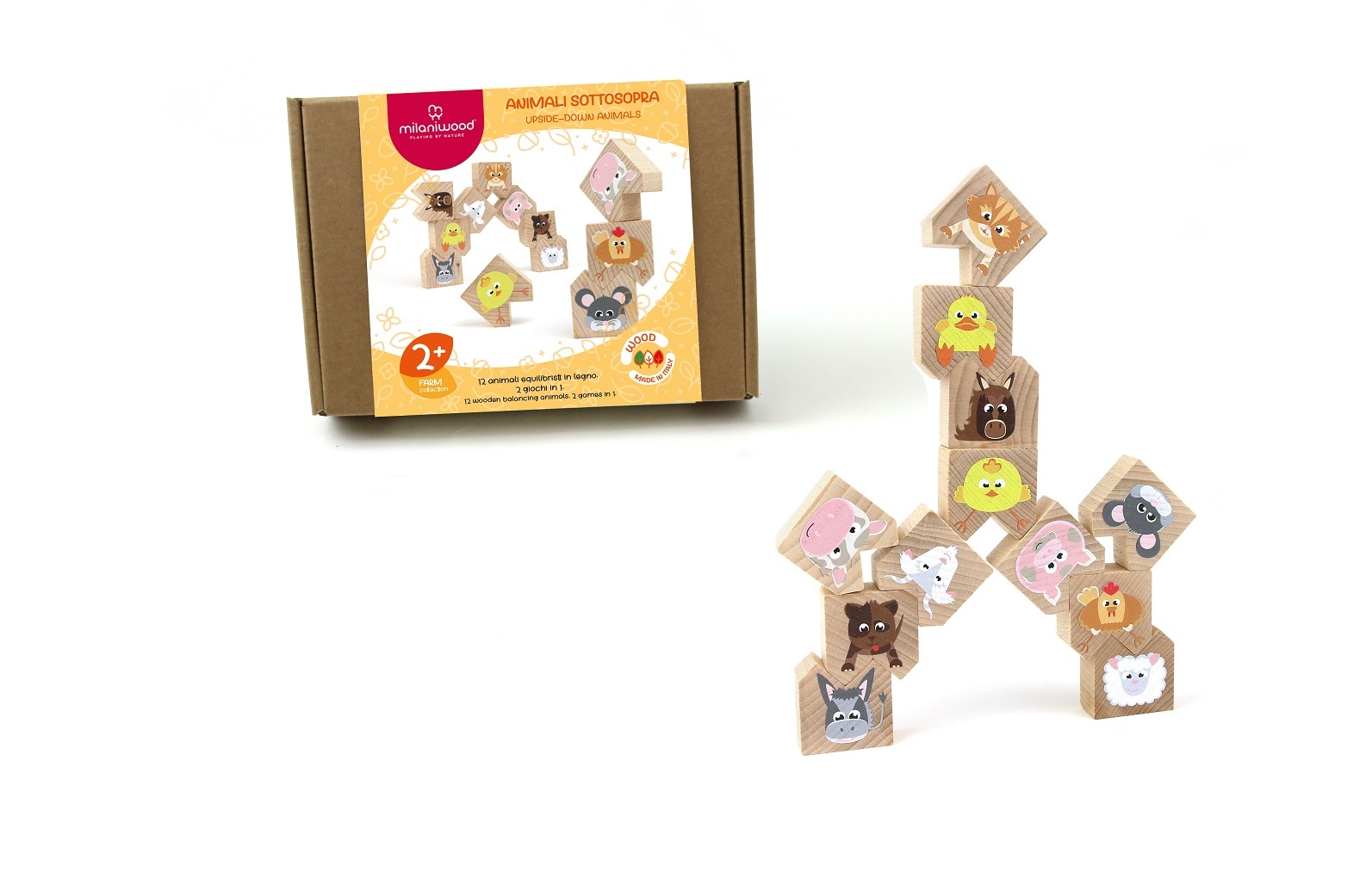 Motorická balanční hra pro 1 až 2 hráče od 2 let. Z hospodářských zvířat se stali akrobaté, kteří se dokážou postavit na špičkách uší, na bocích, hlavou dolů nebo správně na nohy. Prasátko stojí na slepici, kůzlátka chodí po rozích, myš nese koně... A když jsou zvířátka unavená, lehnou si, a...
