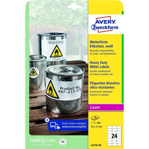 Vel.od.PE etik. Avery Zweckform-bílé,70x37mm,480ks