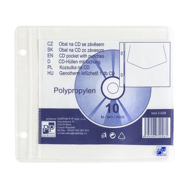 Závěsné transparentní obaly na 1 CD/DVD Vhodné pro zavěšení do mechaniky pákových a kroužkových pořadačů Materiál: polypropylen prečítať celé