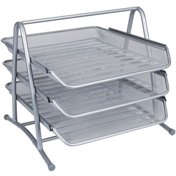 Tento trojposchodový odkladací zásobník v moderne striebornej farbe sa stane nenahraditeľným doplnkom vášho pracovného stola. Jeho rozmery 278 x 275 x 350 mm poskytujú dostatok miesta pre formát A4, takže v ňom môžete pohodlne uložiť všetky dôležité papiere, dokumenty či zošity. Drôtená konštrukcia zabezpečuje optimálne odvetrávanie a prehľadnosť, aby ste vždy rýchlo našli, čo potrebujete.