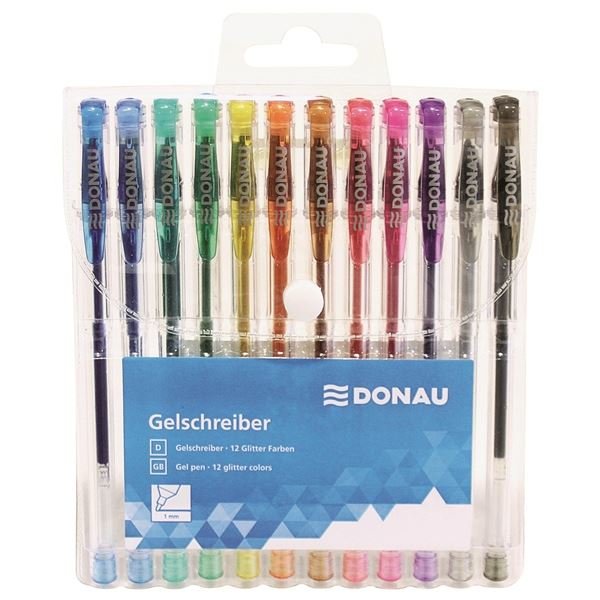 Gelový roller Donau, sada třpytivých barev, 12 ks