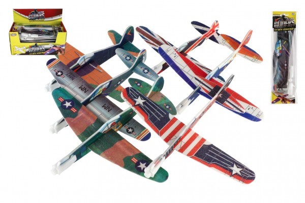 Letadlo házecí pěnové 28cm mix druhů v sáčku 24ks v boxu