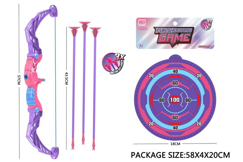 Luk se šípy a terčem. Součástí luk, 3 šípy, terč. Délka luku 57 cm, průměr terče 18 cm. prečítať celé