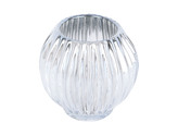 Svícen skleněný na svíčku Lines round 9,3 cm stříbrný Present Time