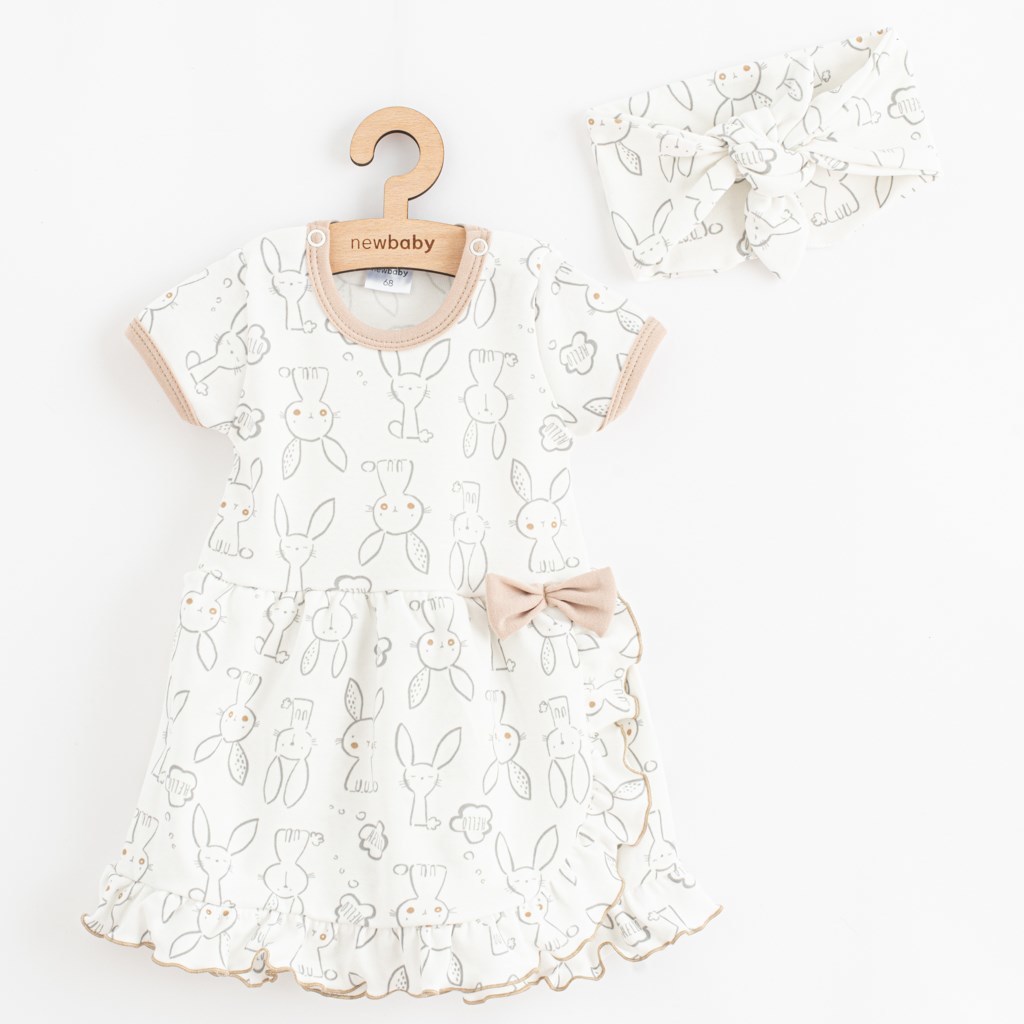 Krásné letní bavlněné kojenecké šatičky s čelenkou české značky New Baby Rabbit friends pro všechny malé parádnice. Šatičky s krátkým rukávem zdobené králíčky a roztomilým volánkem, jsou ušity ve tvaru písmene A. Zapínání na cvoček na ramínku usnadní oblékání. Šaty mají velmi příjemný a kvalitní materiál, který je vhodný pro miminka. Krásná bavlněná dívčí čelenka, potěší všechny malé parádnice. Čelenka je pružná, dobře se přizpůsobí. Složení: 100% bavlna.