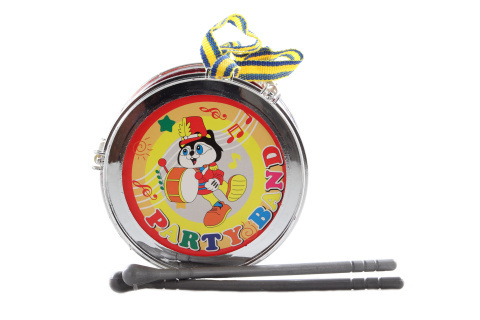 Plastový bubínek o průměru 13 cm s paličkami. Součástí šňůrka pro zavěšení. Baleno v igelitovém sáčku. Věk 3+ prečítať celé