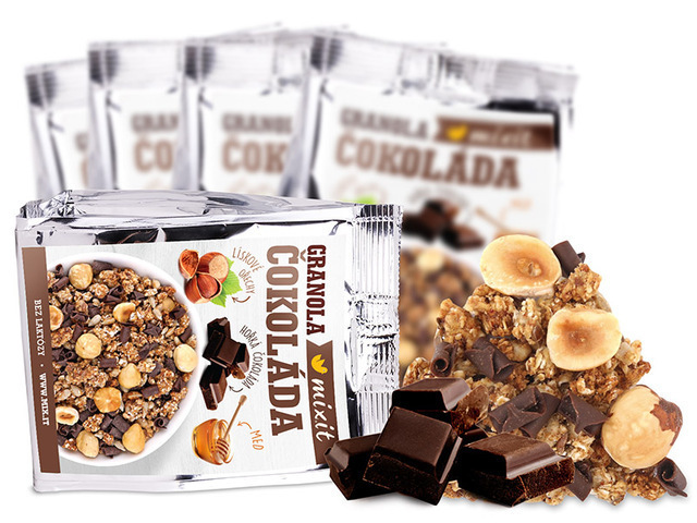 Přivítejte první čokoládovou granolu od Mixit. Křupněte si medové kousky dozlatova upečených ovesných vloček bez lepku spolu s lněnými semínky a přepuštěným máslem bez laktózy. V granole je přimixováno i 22 % kvalitní hořké čokolády a 15 % pražených jader lískových oříšků.