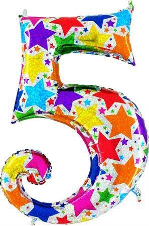 Nafukovací balónek číslo 5 barevné hvězdičky 102cm extra velký - Grabo