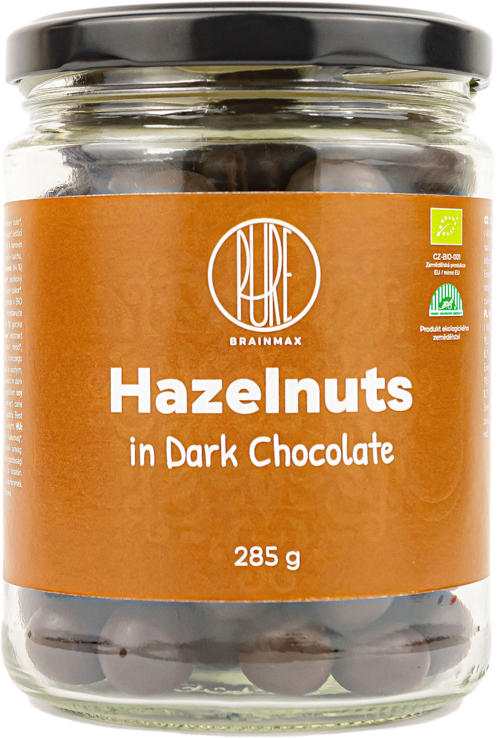 BrainMax Pure Lískové ořechy v hořké čokoládě, 285 g