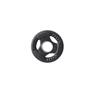 Olympijský, pogumovaný kotouč HMS Tri-grip je známkou kvality a precizního provedení. Tento talíř má otvor o průměru 50 mm, je tedy vhodný pro všechny typy olympijských os. Závaží disponuje třemi držadly pro snadnou manipulaci a pogumovaný povrch prodlužuje jeho životnost.