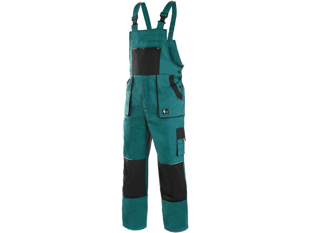 Pánské kalhoty s náprsenkou, zdvojená kolena, přední vakové kapsy, náprsní kapsa na zip, boční kapsy na metr a na mobil, pas v zadní části do gumy. Prodloužená velikost na 194 cm. prečítať celé