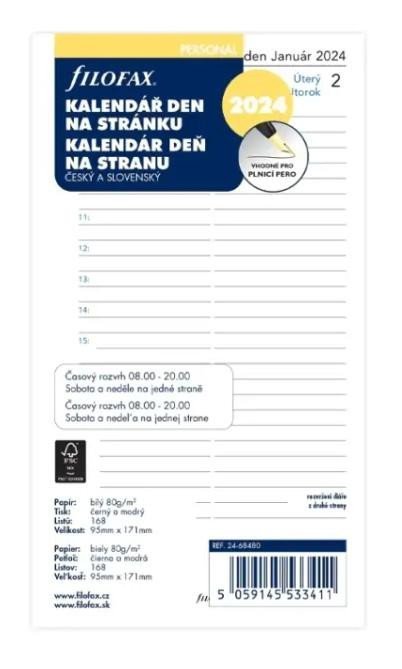 Filofax Náplň do diáře 2024 - osobní, den/1 str, linky, ČJ+SJ (česky)
