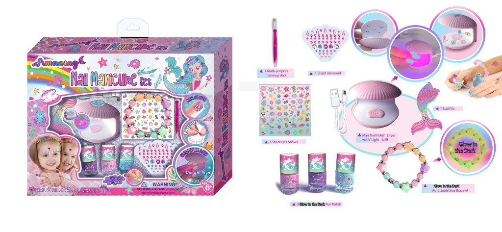 Nádherná sada nehtového studia, která obsahuje 3 slupovací laky na nehty, ozdobné kamínky, nálepky, ve tmě svítící náramek a uv lampu v krásném balení. K lampě je v balení součástí usb kabel, nevyžaduje baterie, pouze zdroj napájení. Zažij spoustu zábavy a ozdob sebe i kamarádky. Vhodné pro děti od 6ti let.