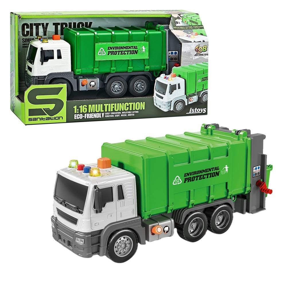 Śmieciarka z koszami na śmieci. Elementy ruchome - kosze zakłada się na tył śmieciary i podnosi się je do góry. Efekty dźwiękowe i świetlne. Skala - 1:16 Wymagane baterie: 3xAG13 (dołączone) prečítať celé