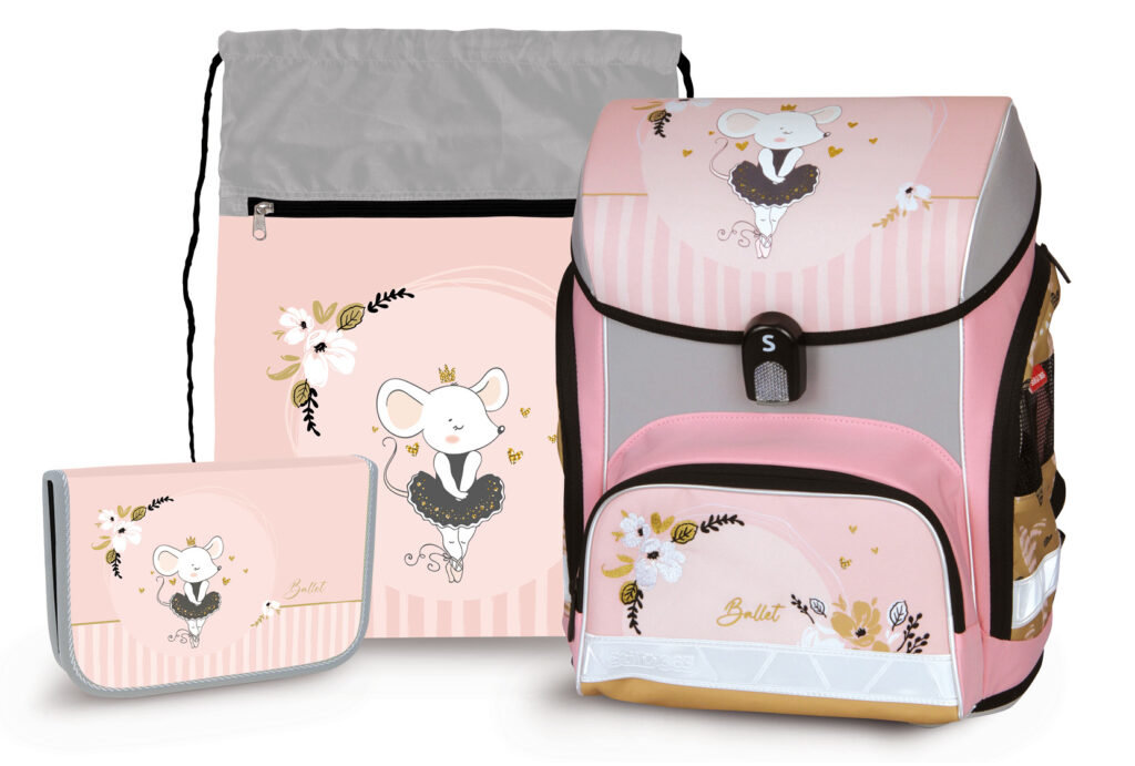 1. Školní aktovka - kvalitní, ergonomicky tvarovaná odlehčená školní aktovka je vybavena reflexními prvky a anatomicky tvarovanými zády s pevnou konstrukcí.2. Školní penál jednopatrový, prázdný s dvěma chlopněmi, o rozměru š. 19,5 x v. 3,5 x h. 13 cm3. Školní sáček na cvičky vhodný pro žáky 1. stupně ZŠ vyroben z pevného, kvalitního materiálu. Rozměr sáčku na přezůvky 44 x 32 cm.