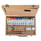 Sada kvašových barev Sennelier 15ks s příslušenstvím, dřevěná kazeta