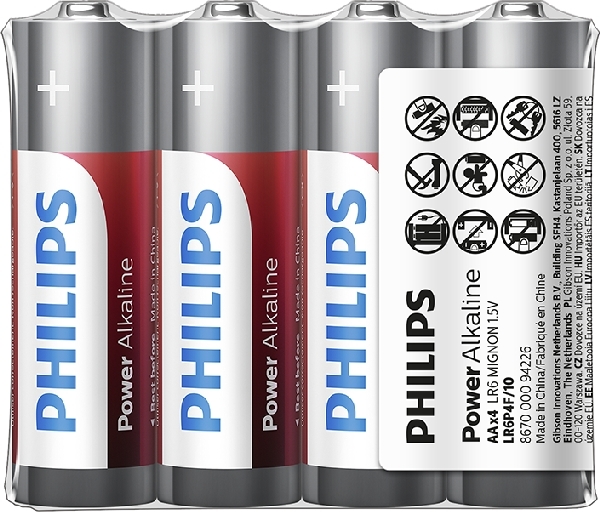 Power Alkaline typ baterie AA / LR6 alkalickánapětí baterie 1,5 Vzaměnitelné za typy AA, LR6, AM3, 15A, MN1500alkalické baterie Philips obsahují 0 % kadmia, rtuti a olovadoba cerstvosti 10 let4 ks v balení prečítať celé