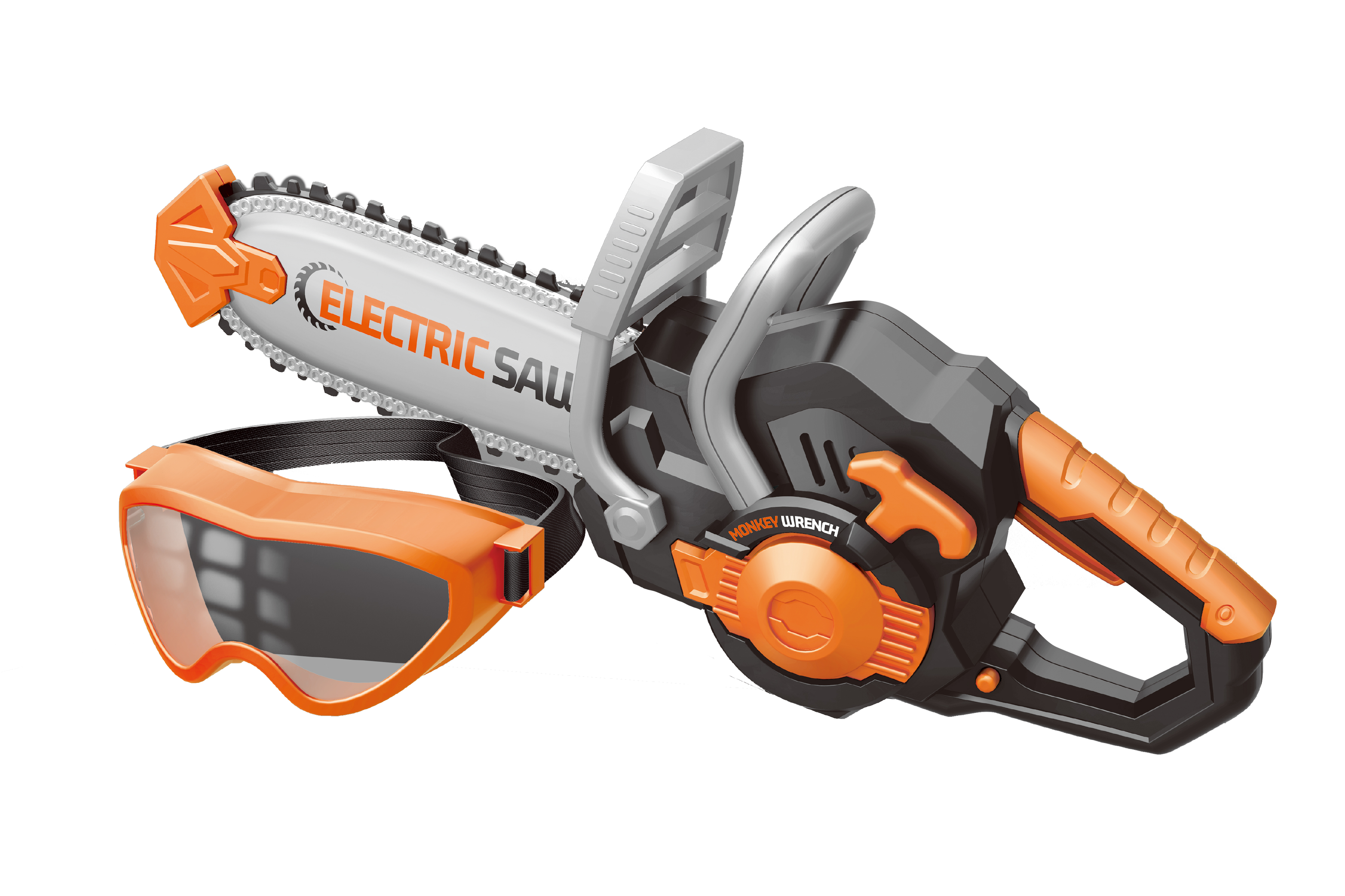 Motorová pila 34 cm a ochranné brýle. 3xAA nejsou součástí. Vydává zvukové efekty. Aktivace tlačítkem na levé straně. prečítať celé