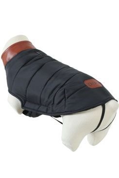 Nepromokavá prošívaná trendy bunda je velmi pohodlná. V oblasti krku a hrudníku je nastavitelné pružné zapínání na suchý zip. Límec a nášivka na zádech s nápisem DOG ze syntetické hnědé kůže. Obleček má intergrované otvory na vodítko a na nohy.