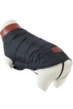 Nepromokavá prošívaná trendy bunda je velmi pohodlná. V oblasti krku a hrudníku je nastavitelné pružné zapínání na suchý zip. Límec a nášivka na zádech s nápisem DOG ze syntetické hnědé kůže. Obleček má intergrované otvory na vodítko a na nohy.