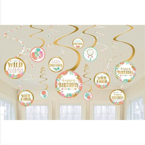 Závěsné spirály  jsou perfektní dekorace pro party Boho Birthday a další. Materiál: folie + papír. Velikost: 61 cm. Balení: 12 ks. prečítať celé