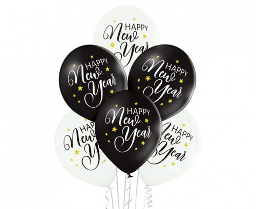 Latexové balonky bílo-černé - Happy New Year 30 cm - 6 ks