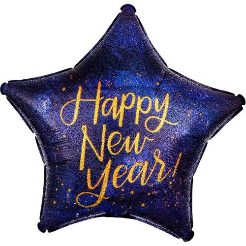Foliový balonek hvězda Happy New Year - holografická 45 cm