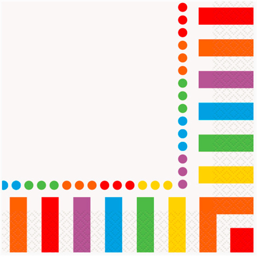 Papírové ubrousky s proužky a puntíky, vhodné na párty, která hraje všemi barvami. Vhodné spojit nákup např. s barevnými kelímky a talířky. Balení: 16 ks. prečítať celé